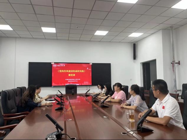 活动中,微党课围绕高校作风建设的重要性与具体实践展开,详细阐述了作风建设对高校校风、教风、学风塑造的关键作用,通过剖析多所高校的成功经验,为外国语学院的作风建设提供了有益借鉴。