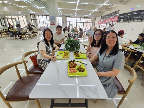 活动首站设在海棠苑餐厅。13:30起,师生们围坐餐桌,边享用午餐边开启“微座谈”。教师们主动询问学生学习生活情况,认真记录大家对教学安排、校园管理等方面的建议。“最近专业课进度能跟上吗?”“食堂的菜品合不合口味?”一句句亲切的问候,让原本严肃的师生关系多了份“家人”的温度。学生们也敞开心扉,分享了备考专业四级的小妙招、参与校园文化活动的收获,现场氛围温馨融洽。