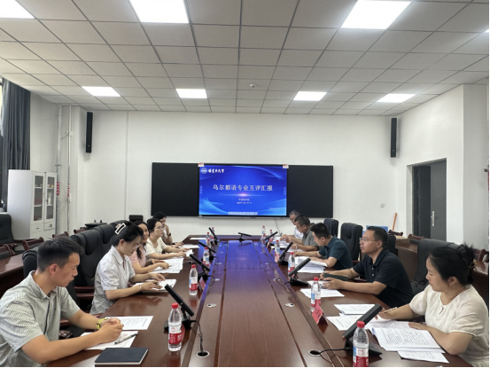 6月19日下午,乌尔都语专业校内评估工作在外语楼229会议室开展。评估专家组由陈国栋、郭伟锋、张翠丽、冯建菊、王新建5位教师组成。教务处副处长胡宝华、外国语学院党委委员、副院长姚小玲、乌尔都语专业负责人秦佳辛、学院系领导、教师代表全程参与评估工作。
